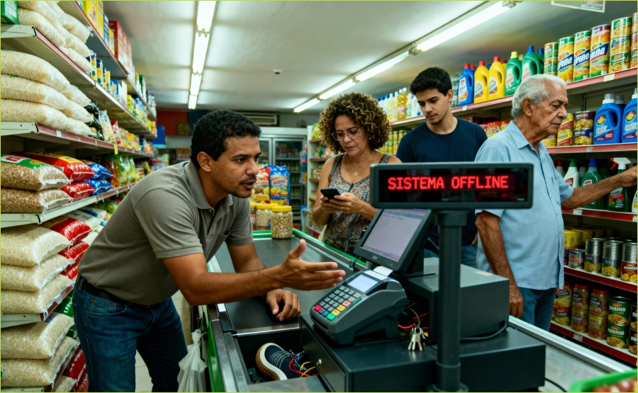 Imagine a cena: sua loja está cheia, a fila no caixa começa a crescer e, de repente, a maquininha de cartão para de funcionar. O sistema trava. A internet caiu.